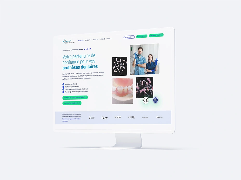 Je suis heureuse de vous présenter mon dernier projet web : la création du site CERA+ Dental, laboratoire de prothèses dentaires qui accompagne plus de 1000 dentistes partout en France avec des prothèses de haute qualité, garanties et traçables.