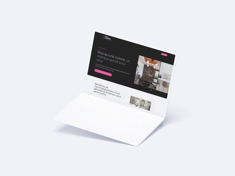Pour Proj’Cuisines, j’ai conçu une landing page unique qui va droit au but : donner envie aux visiteurs de confier leur projet de cuisine, et les amener à prendre contact ou à passer au showroom.